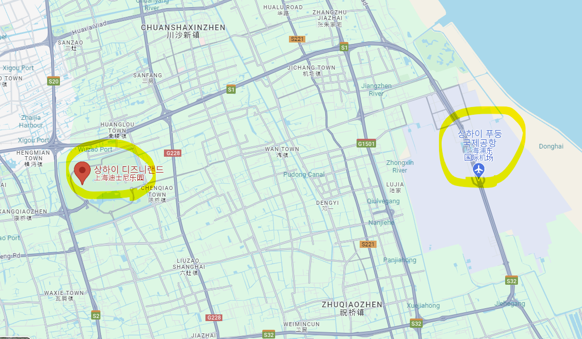 상해 디즈니랜드는 푸동 공항에서 차로 20분 이내로 올 수 있는 곳입니다. 보통 상하기 푸동 국제공항에서 셔틀버스도 운행하기 때문에 확인해 보시기 바랍니다.