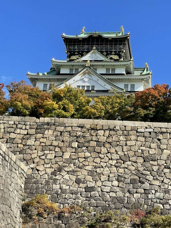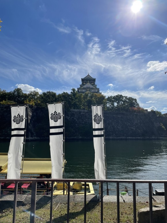 가까이 가면서 오사카성도 정면에서 볼 수 있었고, 또 멋진 가을 하늘과 오사카성, 강도 다같이 한 폭에 담을 수 있었어요. 정말 멋진 장면들이었습니다.