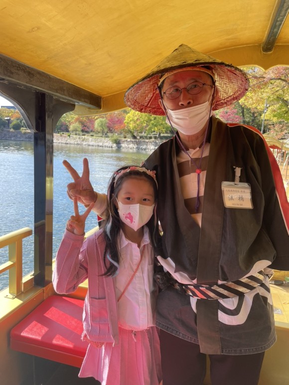 오사카성 배를 타고 설명을 들으며(일본어 설명) 한바퀴 정도를 쭉 도는데요, 사실 설명해 주시는 뱃사공분께서 가끔 간단한 한국어로도 설명을 해주셔서 너무 반갑게 잘 들을 수 있었습니다.