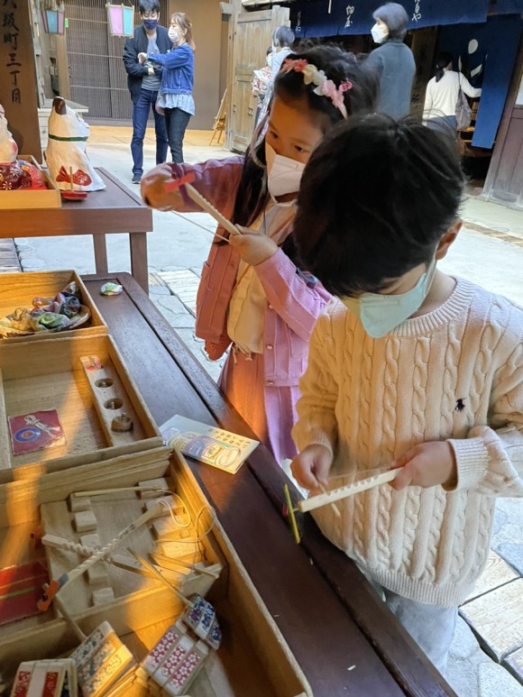 오사카 주택박물관은 재미없는 박물관이 아니라, 집에도 직접 들어가 볼 수도있고, 아기자기한 마을 자체가 아침부터 밤까지 시간이 계속 변하는 과정을 볼 수 있고 체험할 수 있는 부분도 있어서 애들이 은근 재밌게 활동했습니다.
