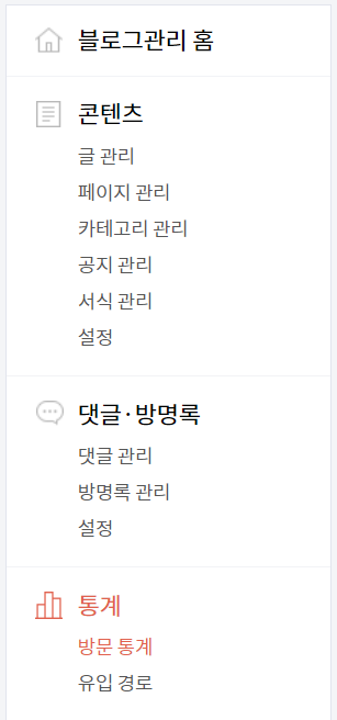 티스토리 관리화면에서 통계 메뉴를 보시면 방문 통계와 유입 경로도 확인할 수 있는데요,