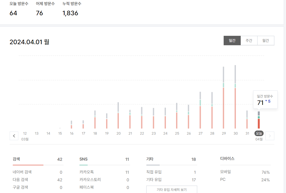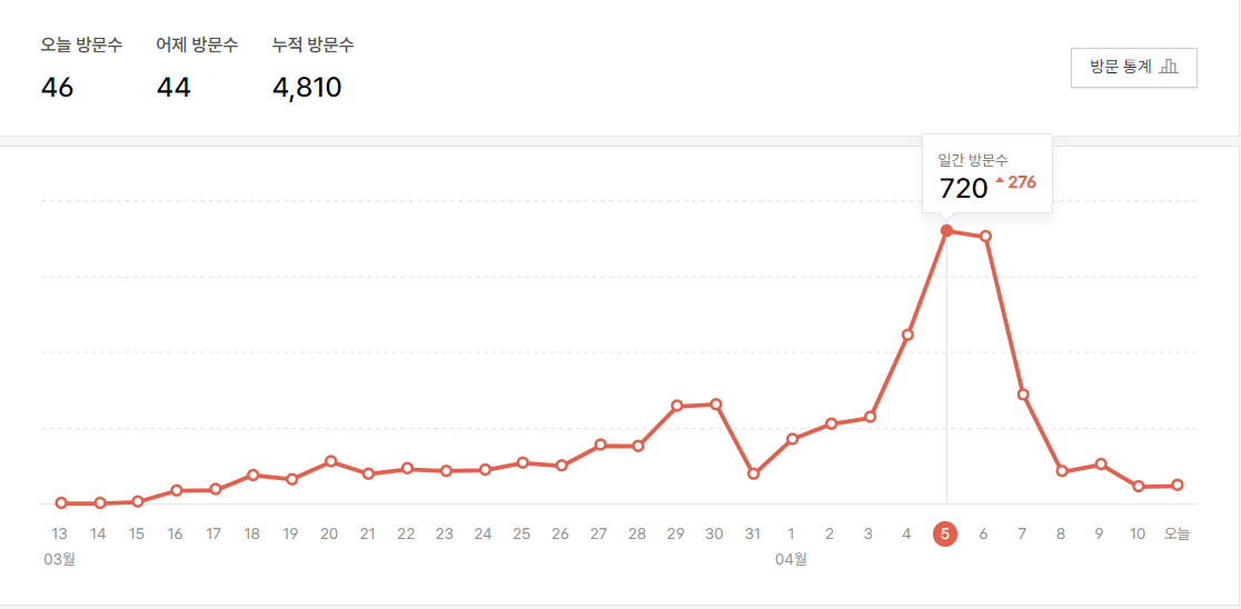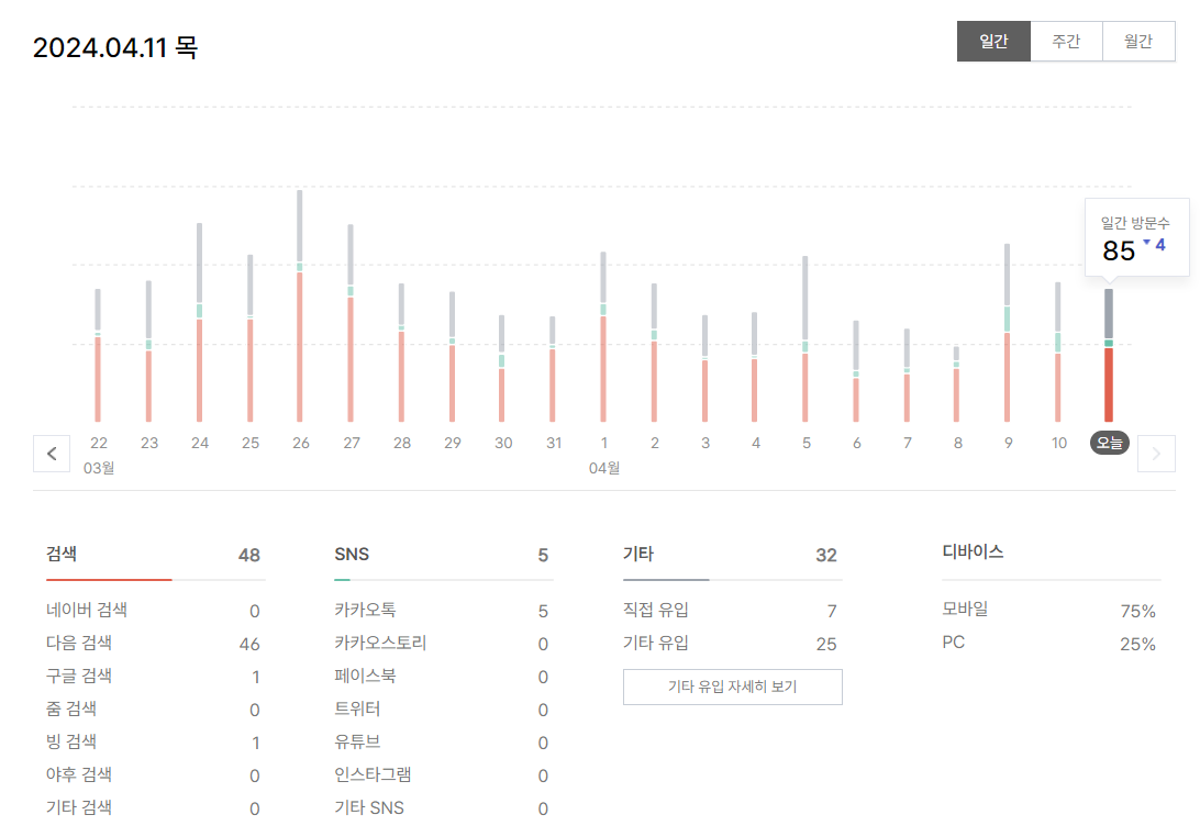 현재 글이 50개밖에 없는데, 이정도면 감사한 것 같기도 하구요, 다시 부지런히 하루에 1~2개는 꼭꼭 써야할 것 같아요.