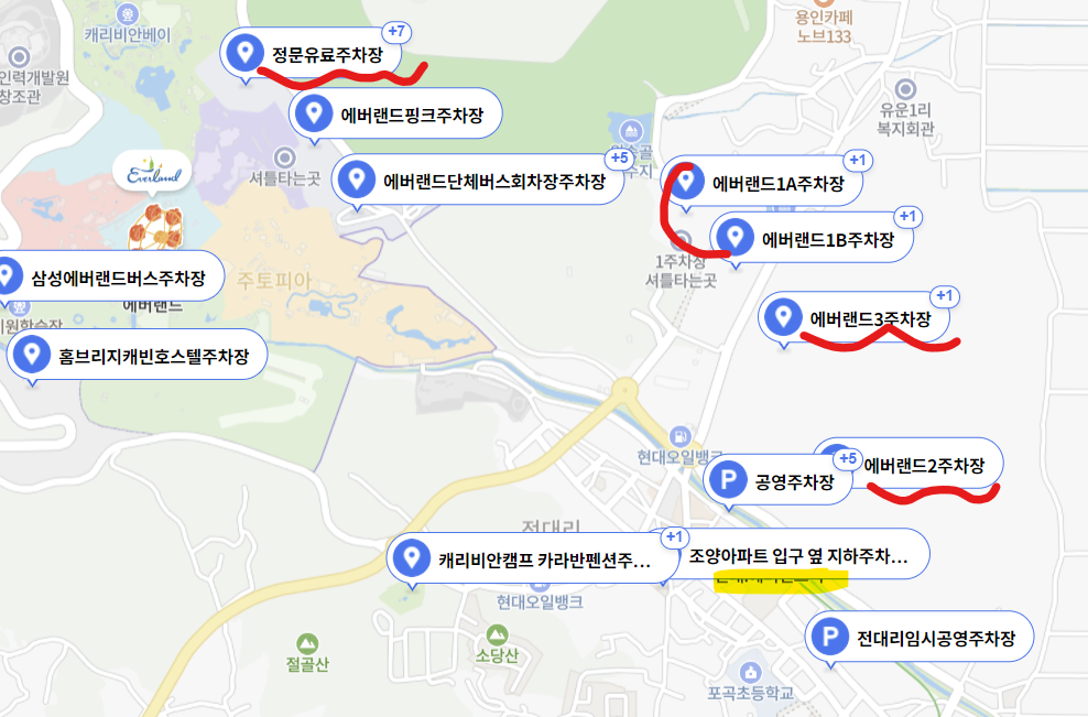 3. 에버랜드 정문유료주차장으로 검색하고 간다.