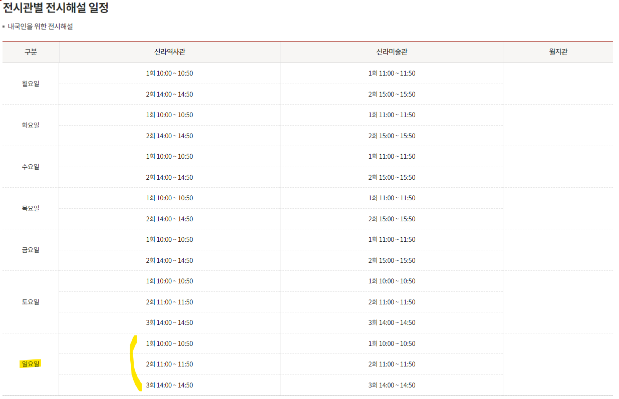 어린이날 행사도 있지만, 기존에 하던 국립경주박물관 전시해설도 어린이날 방문하셔서 시간이 되신다면 꼭 들어보시기를 추천드립니다. 무료해설이지만 선착순 30명만 가능하다고 합니다. 해당 일자는 다행히 일요일이라서 10시, 11시, 14시 세타임의 무료해설이 예정되어 있습니다.
